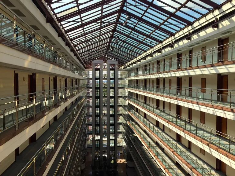 Weltoffenes Flair strahlt die imposante 32 m hohe Galerie im Maritim Hotel Magdeburg aus.